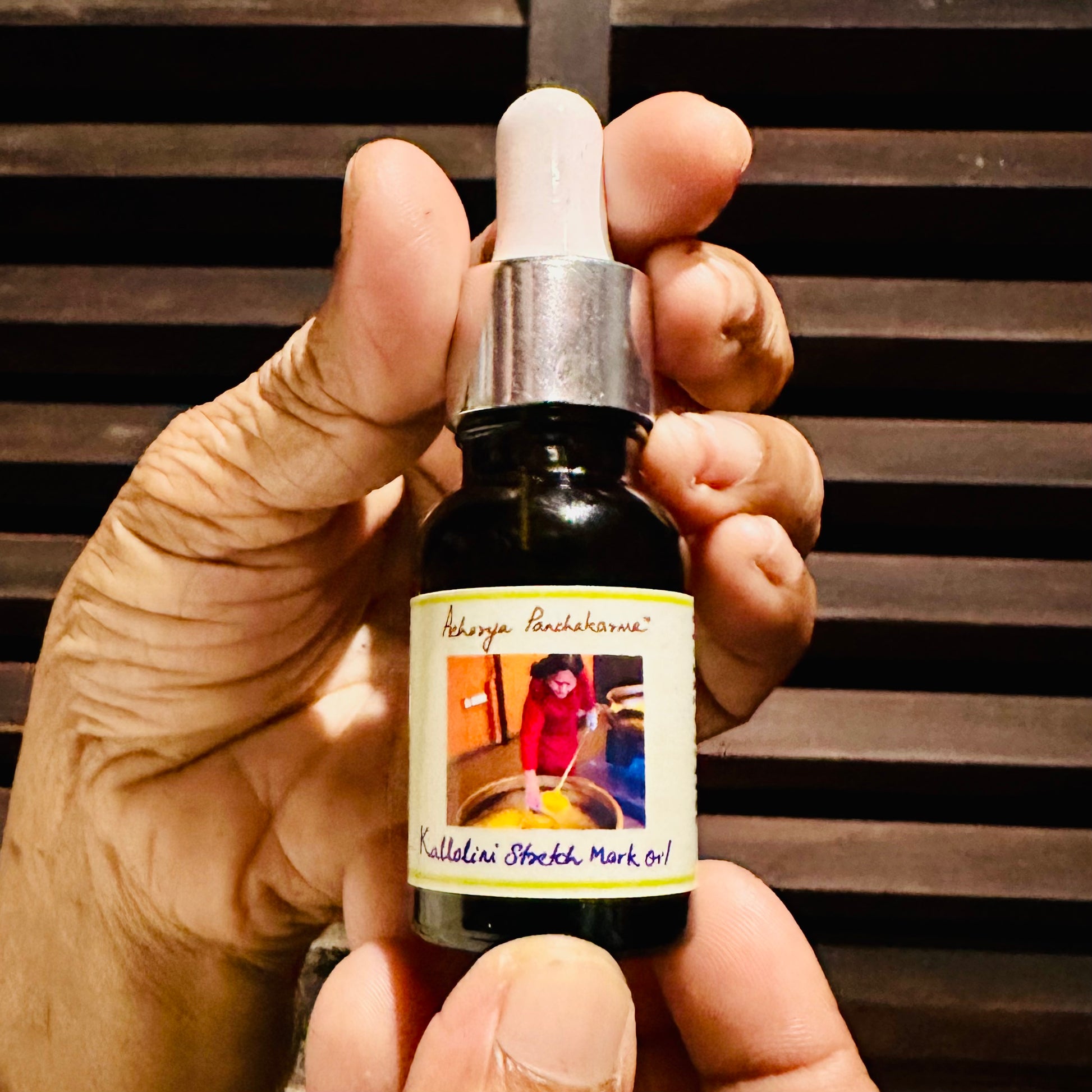 Abhyanga or a mild self-massage was very common during pregnancy and after. They used so many different alternatives. I have chosen the most common and effective herbs for this stretch mark oil like turmeric, Nilamparanda and a lottt of coconut milk. These ingredients do wonders to the skin separately too. But together they work even better. Over the years I have made Kallolini in small quantities for only for my close friends and family. Its because its super hard and time taking to prepare it.